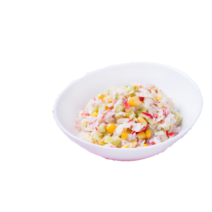 Sastāvdaļas:krabju nūjiņas30%,gurķi20%,MAJONĒZE(rapšu eļļa,ūdens,OLUpulv,VĀJPIENApulv
