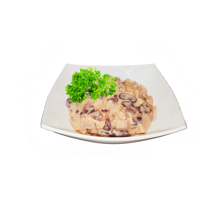 Sastāvdaļas:sark.pupiņas50%,žāv.gaļa20%MAJONĒZE