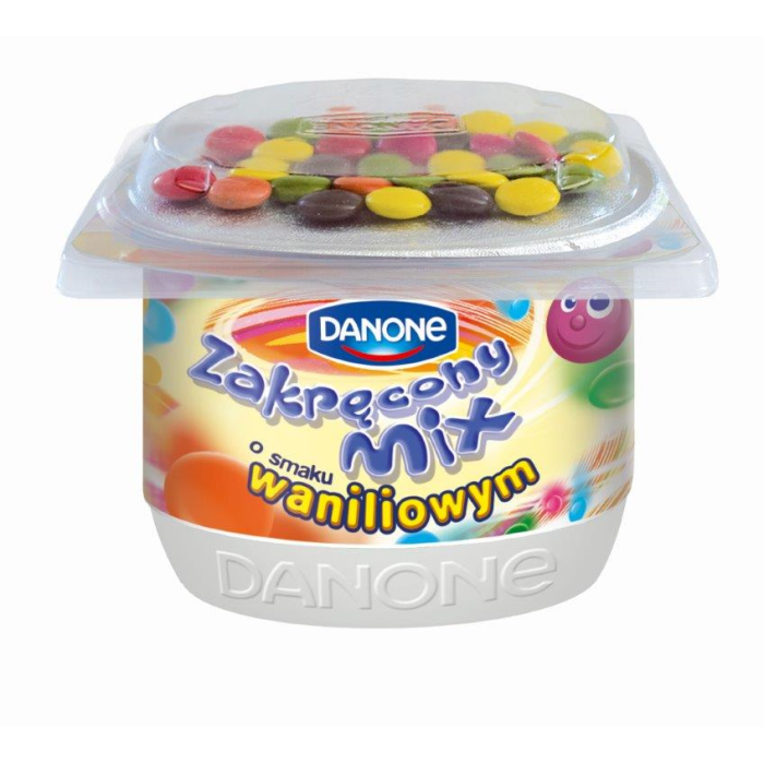 DANONE Zakrecony Mix vaniļas garšas jogurts draž.piena šokol.Polija 125g(1/12)