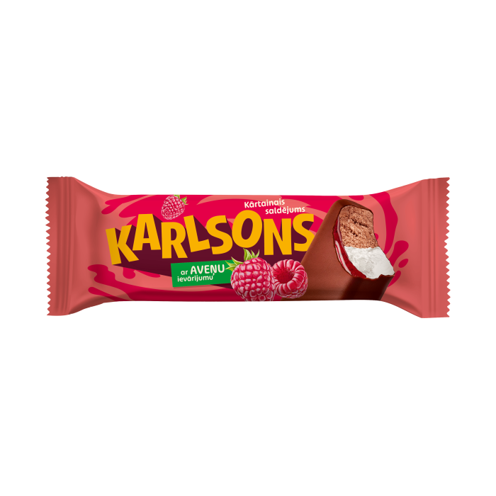 KARLSONS šokolādes, plombīra saldēj.ar aveņu ievārijumu Latvija 100ml/80g(1/60)