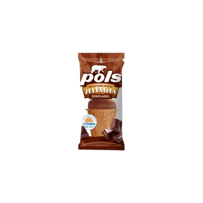 POLS ZELTAINĀ šokolādes saldējums mājas vafeļu glāzītē Latvija 120ml/70g (1/40)