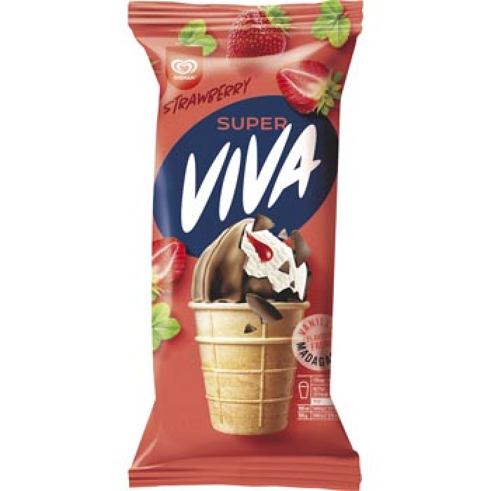 SUPER VIVA krējuma saldējums ar zemeņu ievār. Lietuva 170ml/95g(1/27)