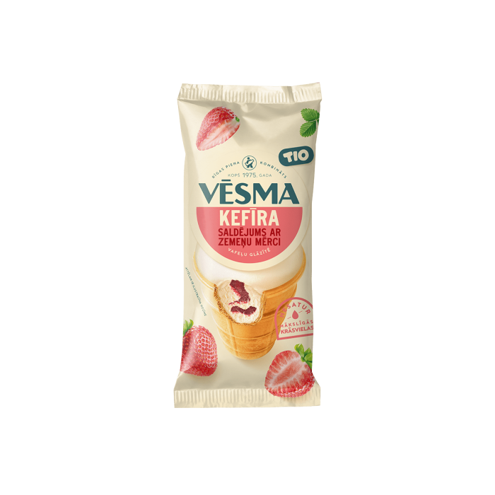 TIO Vēsma Kefīra saldēj. ar zemeņu mērci vafeļu glāzītē Latvija 120ml/80 (1/48)